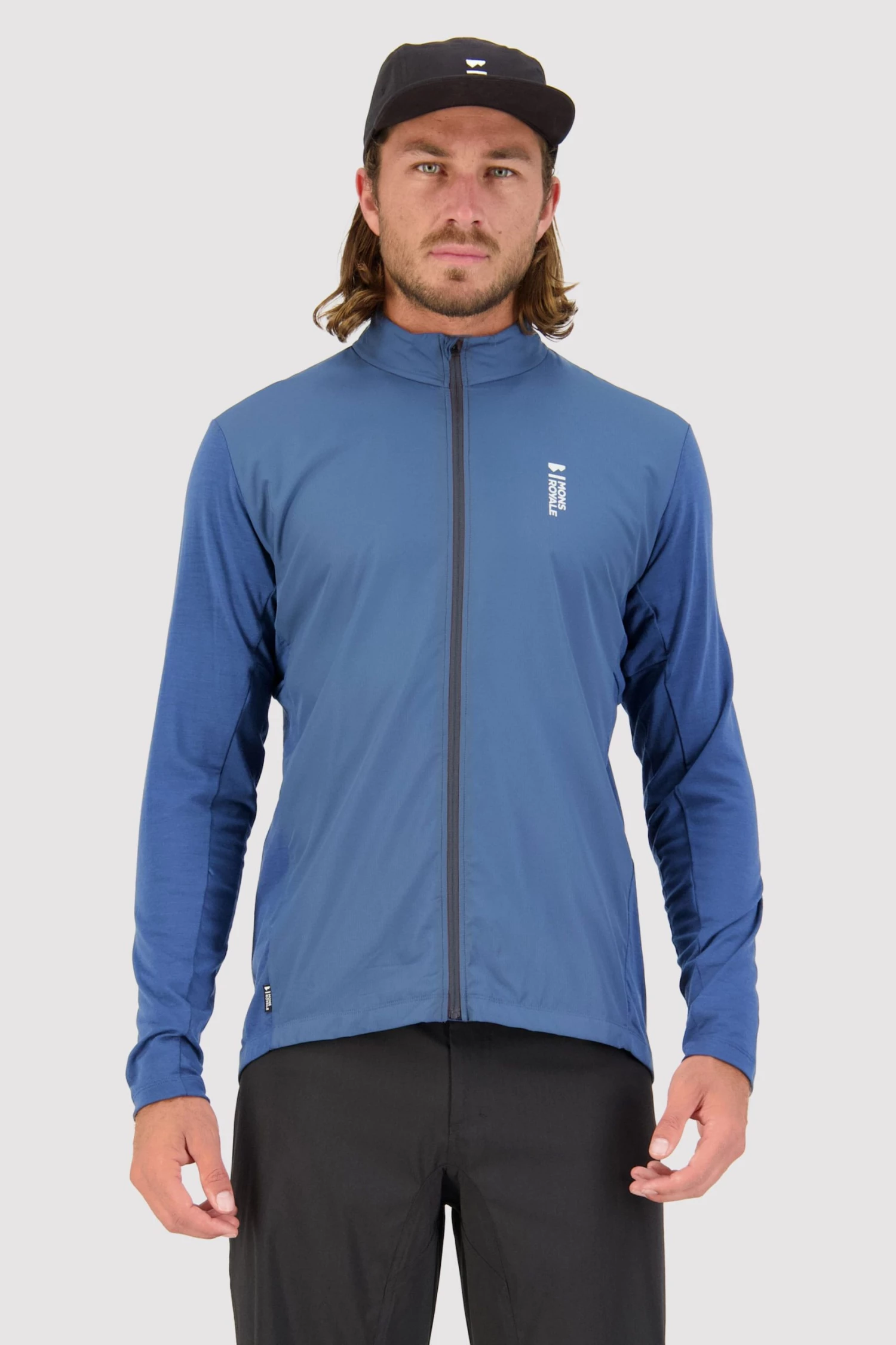 Using a ripstop polyester panel to protect the front of your body from wind chill and Merino Air-Con sleeves and back panel for breathability and temperature regulation.